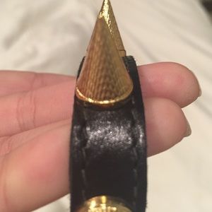 Adjustable belt style black leather bracelet with gold shiny spikes. Worn once or twice in great condition!