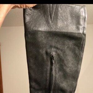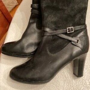 Nice Leather/suede boots with Ralph Lauren brand on sole have been hanging out in my closet for years and it is time for them to go! pointed toe and high heel make them very dressy. good condition. Could use a wipe down to spruce up the suede but, even without that, they are very nice boots. They are priced to sell and be used.