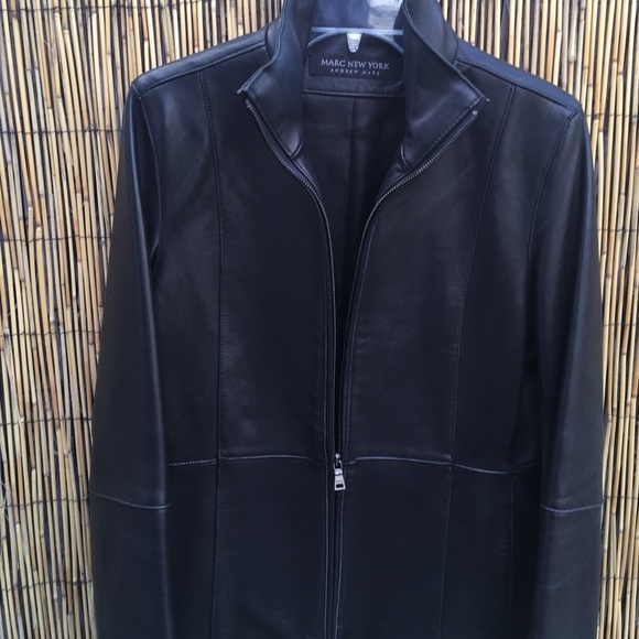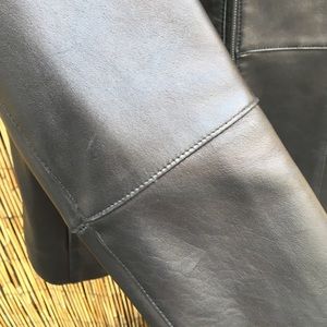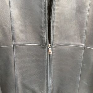 Fully lined & zips up to neck. Excellent condition, like new , soft & sturdy leather-high quality size medium Very Sophisticated and clean look and lines of the jacket so it’s a timeless design and perfect condition-measurements 26” length
