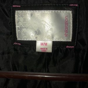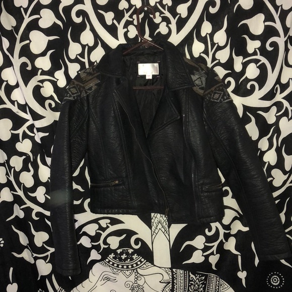 Black leather jacket with designs on the shoulder. It’s never been worn.