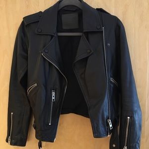 Gorgeous black leather Allsaints Jacket. Great Condition. Still being sold in major department stores. Size O