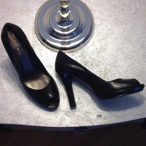 Black leather, keyhole pumps.