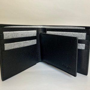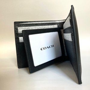 This is a men's Coach black calf leather wallet, model F74991. It has never been used.