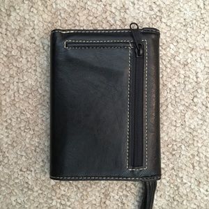 Small black wallet. Never used. Great condition! A lot of card slots and 2 zipper pockets!