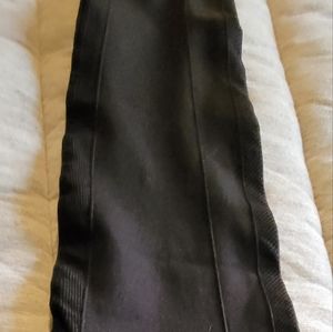 Tight, high waist, with black pattern on the sides. says L but fit like a M.