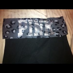 Comfy yoga pants worn about twice so there basically new. they didn't fit right an I never took them back to exchange so now there just takin up space an makin me sad because I would love to wear them there just to tight! Comfortable, cute an simple, leopard print with the PINK blinged with rhinestones.