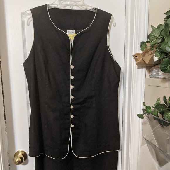 Women's black linen sleeveless dress with white edging and buttons by Styleworks. Size 16. No issues, non smoking home