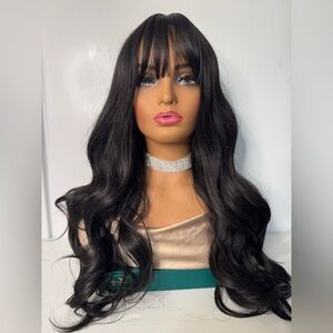 • Color: Black • Texture: Wavy • Wig Type: Machine Wefted • Length: 28 • Cap Size: 20.5" to 22" • Parting: Middle Part • Material: Heat Resistant Fiber • Lace Type: Skin Top / Classic Wig Cap • Combs: No Combs Experience a blend of style and comfort with our bLuxury Black Wavy Wig. This 28 in wavy wig features with a middle scalp part design for an effortlessly balanced look. Crafted using a Machine Wefted technique, the wig promises durability and a comfortable wearing experience. It's made from high-quality heat resistant fiber, which allows for heat styling without any damage. With an adjustable cap size of 20.5" to 22", it fits most head sizes comfortably. Our wig features a skin top design that creates a natural scalp appearance, enhancing the overall realism. The Light Blonde Wavy Wig is a fashionable and practical addition to your daily style.