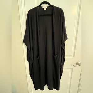 Black size small open face jacket short sleeve long and cozy little pockets in the front worn once