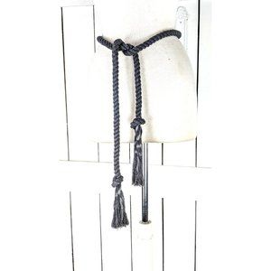 Black long woven braided rope knotted fringe tassel chord tie belt