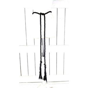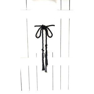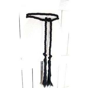 Black long woven braided rope knotted tassel chord tie belt
