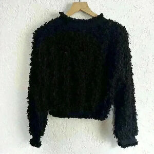 Black loop knit sweater in a size small/medium. Brand is Wishlist. Two small holes in the front but all the loop stitch knits cover it.