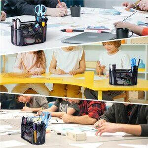 🧿High-quality Desk Caddy - This pen organizer for desk is completely made of metal, has no rough edges, joins are secure, quality of metal mesh is strong which provides a long-lasting, versatile workspace. Workspace organizer with the non-skid bottom pads, holds your stationery in place without sliding and prevent scratches on your desktop.