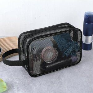 Black mesh shower caddy bag toiletry organizer quick dry for gym travel dorm cam