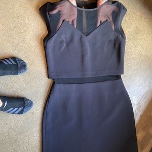 Black mini dress w sheer material- neck and waistline