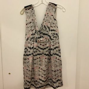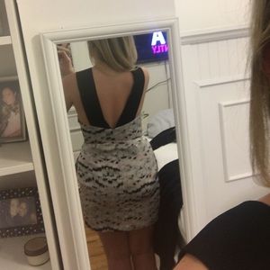 Black multi color mini dress ( light pink , gray , white ) fun for a night out or even a wedding . The dress has pockets on both sides . Never been worn , have tags on them .