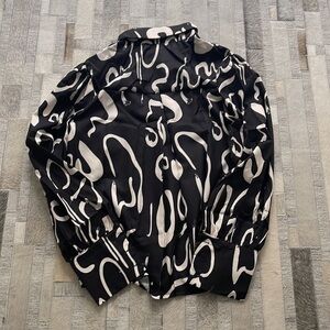 Black n Cream Abstract Print Blouse. Has wider sleeve w/fitted cuffs. Button up. 100% Poly. Runs slightly small