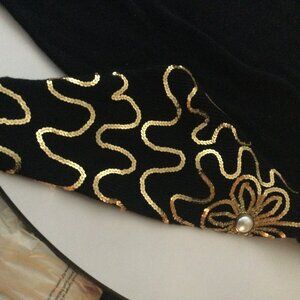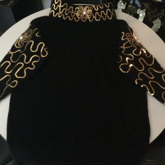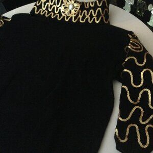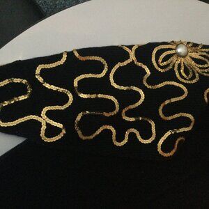 Black n Gold Ladies Bedazzled sweater 100% Acrylic Vintage size: OS