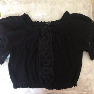 Black off the Shoulder Peasant Crop top NWOT - Renaissance / Western Style