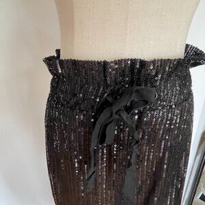 Paper bag drawstring sequined pants with elastic at ankles. Super cute with heels.