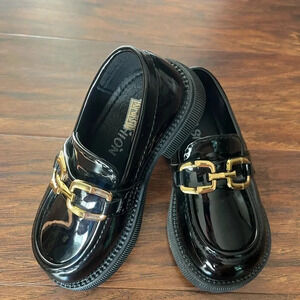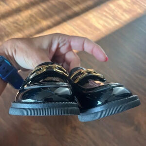 Black patent faux leather loafers with gold buckle- NWOT size 9 US-fashionable