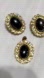 Black pearl style stone with gold and white stones around it pendant and earring set