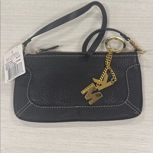 Black pebble leather Michael Kors Wristlet with Gold MK charm
