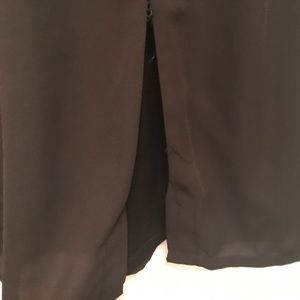 Beautiful cocktail dress with illusion neckline. Wore once. Dry cleaned. Keyhole back. Peplum detail. Slit on back is split but could be easily repaired (see picture) size Large. I think it would fit size 8/10. Very flattering!