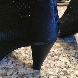 Sweet open toe booties purchased from Urban Outfitters (Deena and Ozzy brand). Zippered back, hits right at the ankle. These are super comfy and don't dig into the ankle the way most ankle booties do on me. I have worn these 3-4 times. The only defect is a small scuff on the outer ankle of the left shoe (pictured). The material is PU. I wear a 7.5 and these 7s fit me perfectly, so feel like they run a tad large. Heel height is approximately 3". Cool perforated pattern.