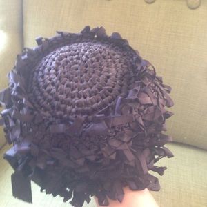 Flapper-esque soft pillbox-design hat, made from ribbons. Worn rarely.