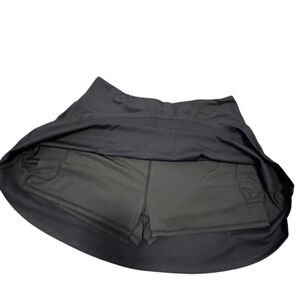 Black pleated tennis skirt/skort. Built in shorts and small zip up pocket XL