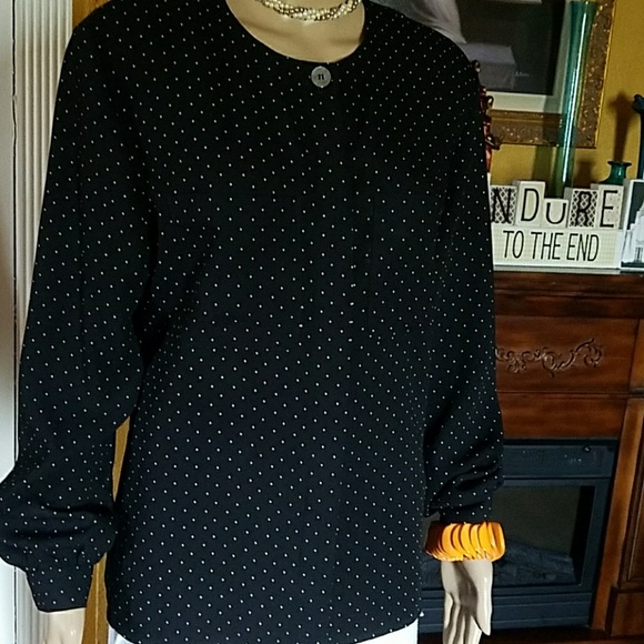 Elegant black and white polka dot blouse with button down hidden button 2 pockets and long sleeve worn once.