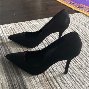 Aldo pumps. The texture is like a textured suede. 3.5” heel.