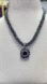 Black purple silver hand beaded necklace 12mm hand bezeled purple crystal 21"