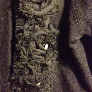 Black quarter-sleeve short sweater. Pearl & black rose detail trim