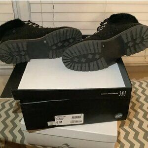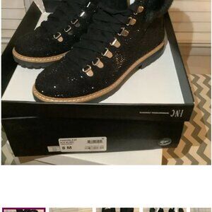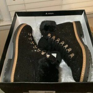 Black Rhinestone ankle boots with faux fur trim