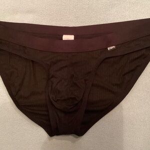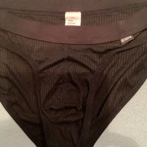 Black ribbed brief, tag is L but fits like medium, like new, super comfortable.