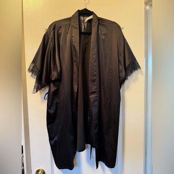 Silky black robe with lace details