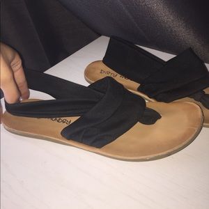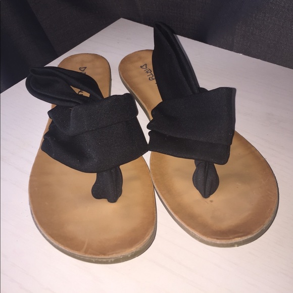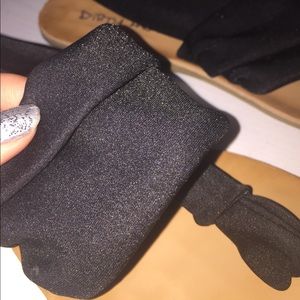 These black sandals are perfect maxi dresses! I'm selling these because I have quite a few of them in my closet. The shoe itself is thin. The black material is SO soft and makes your feet so comfortable. It's so much better than having a hard strap on the back of your heel