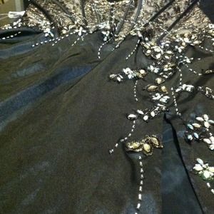 Beautiful black satin crystal gown original list price $325.00 never worn