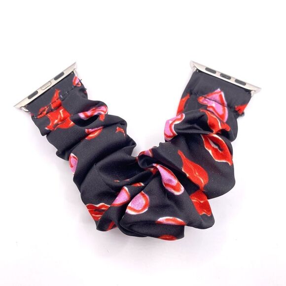 smart watch apple replacement band, Women’s female Black with lips and hearts scrunchie smart watch replacement band, New, See pictures for measurements