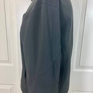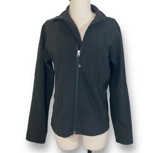 Ladies small versatile and comfortable black Fjall coat is a practical utility jacket for outdoor adventures as well as everyday urban life. Excellent pre owned condition, no notable flaws or signs of wear. Looks like new! Heavier than a thin windbreaker. Comfy scuba-type machine washable polyester spandex fabric with light stretch. It has a thin fleece lining, front zipper with an easy pull tab that zips into a high/funnel neck, two hand pockets and one chest pocket, all with fleece lining & hidden zippers & contoured yoke, back & arm seam detail.