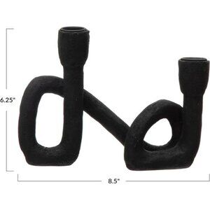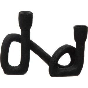 Black sculptural double taper candle holder modern resin centerpiece home decor