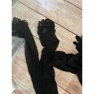 These are black, see-through, elbow, length, gloves, and knee high nylon pants hose. These are brand new have never been worn.