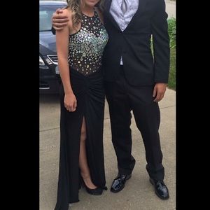 Worn once, excellent condition. A few gems may be a little loose, but other than that it is perfect. Purchased from a local gown store. I am 5'3 and wore it with 4 inch heels