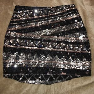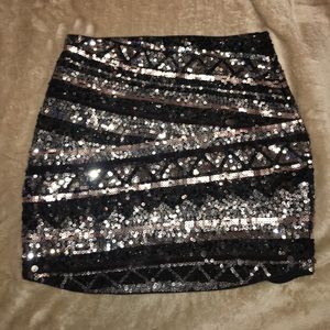 Black, gold and silver body con mini skirt with elastic band on waist. Perfect for going out