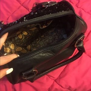 Charming Charlie's black sequin purse with short handles, a zipper pocket inside and two compartments. Only used once or twice !
