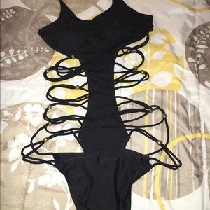 Sexy black cut out side bathing suit. Must have to wear!!! Size available in small and large. Never worn brand new!!! Please note all sales are final...No returns or exchanges!!!!