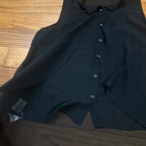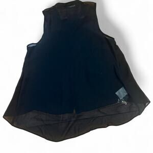 black sheer, button-up blouse, sleeveless top, elegant style, lightweight fabric, sophisticated, minimalistic, evening wear, soft texture, chic