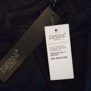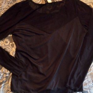 Black long sleeve shirt by Zanzea Collection. Sheer sleeves, sheer v-neck and sheer upper back detail. Size XXL. Silky soft material. Brand new with tags.